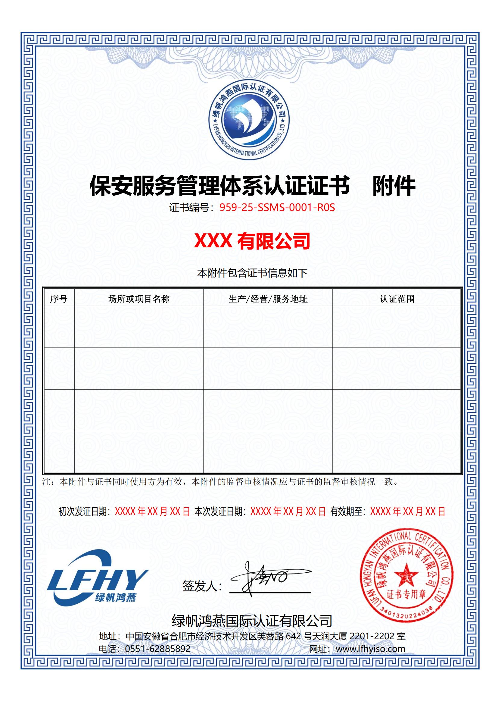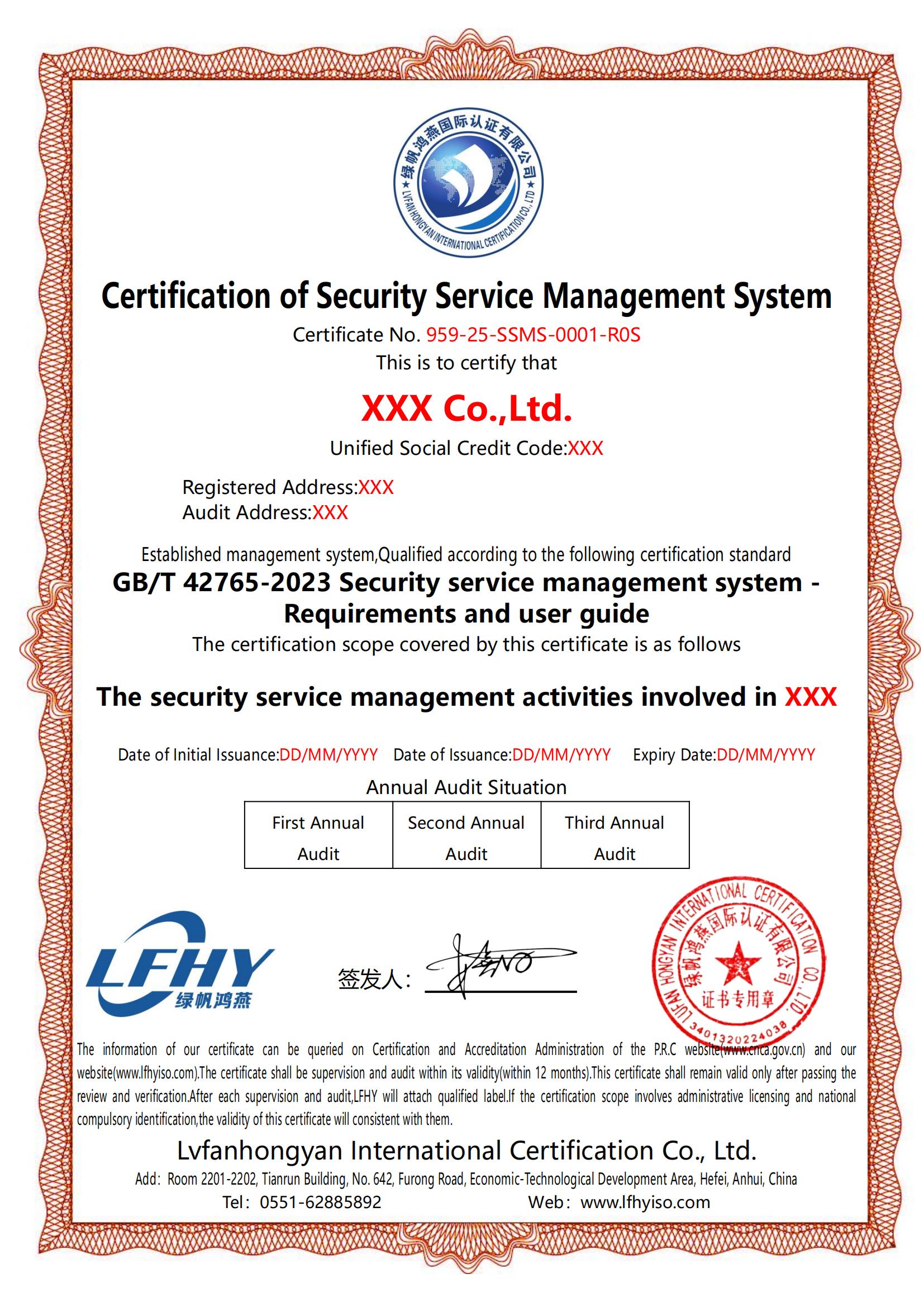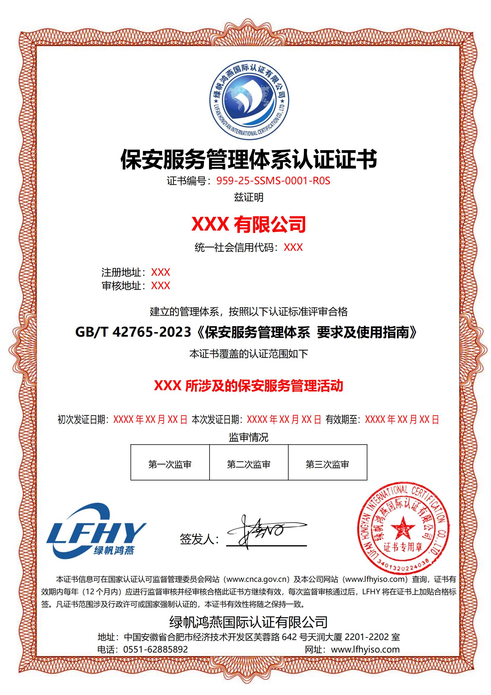 《保安服務(wù)管理體系認(rèn)證證書》